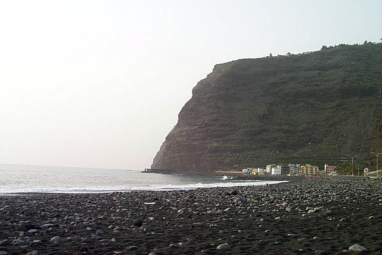 Über 500 Meter fällt diese Steilküste ab. Am Fuß: Fischrestaurabts. Der Puerto Tazacorte ist einer der kontrostreichsten Flecken der Insel.